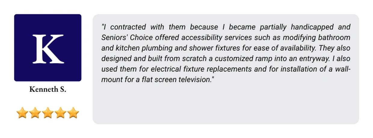 At Seniors’ Choice, we provide customized home modifications for older adults and individuals with disabilities. As a San Diego Regional Center (SDRC) vendor, we work with families and individuals with developmental disabilities to create safe, accessible, and functional living spaces. Whether you're looking to age in place or need modifications for a disability, we’re here to help.